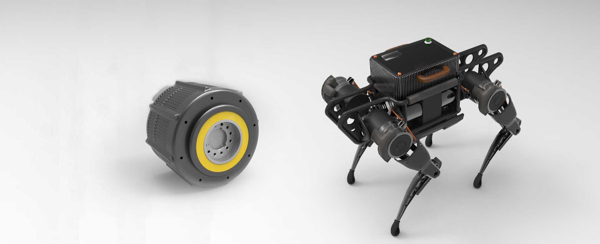 12自由度四足仿生機(jī)器人,整機(jī)12套關(guān)節(jié)電機(jī),單關(guān)節(jié)電機(jī)功率1kW,峰值輸出扭矩200Nm,最高輸出速度180rpm,電機(jī)重量2kg.